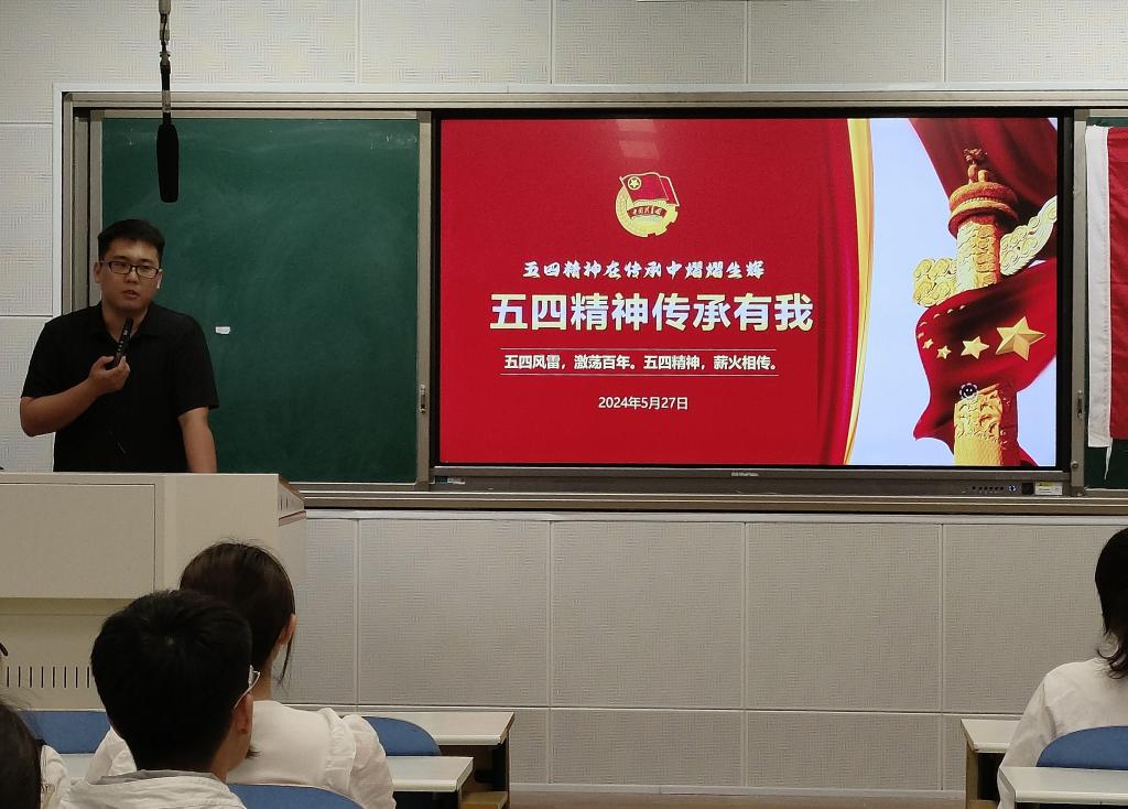王洋老师以“五四精神传承有我”为题,以“什么是五四运动”为引,向同学们介绍了五四运动的重要精神。五四运动既是一次爱国的政治运动,又是一次文化运动,同时还是一次空前的思想解放运动。爱国学子高举爱国主义的旗帜,走上了为民主、科学而斗争的道路。在运动中,中国工人阶级作为独立的政治力量登上政治舞台,一批具有初步共产主义思想的知识分子认识到工人阶级力量的伟大,积极投身到工人中间进行马克思主义的宣传和组织工作,极大地促进了马克思主义和工人运动的结合,为中国共产党的成立奠定了组织基础。