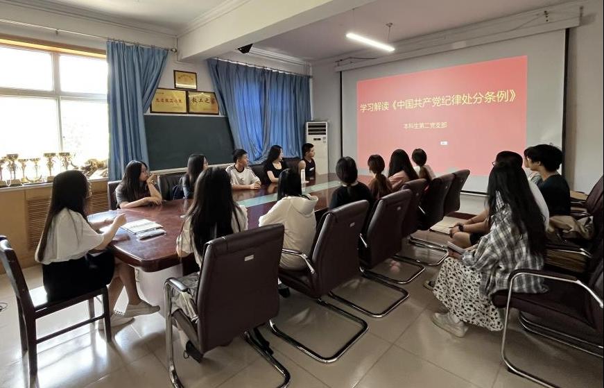 【本科生第二党支部】为进一步增强党员纪律规矩意识,推动全面从严治党向纵深发展,本科生第二党支部于6月20日组织全体党员,深入学习和解读了新修订的《中国共产党纪律处分条例》。