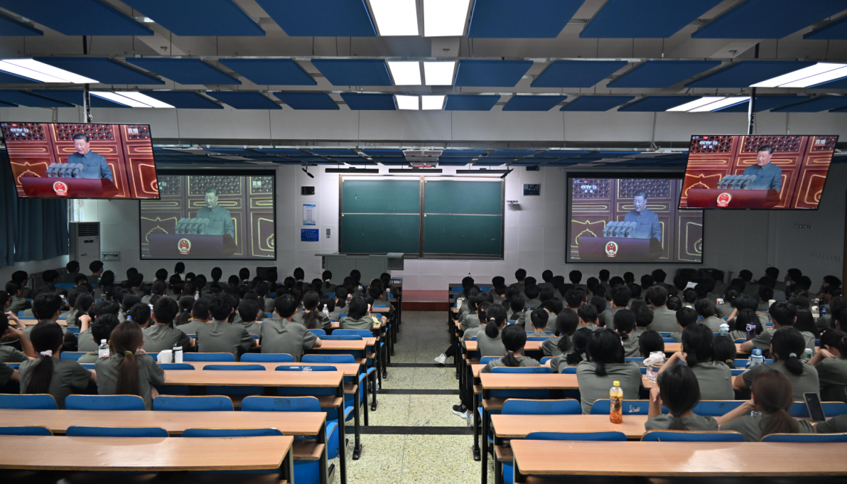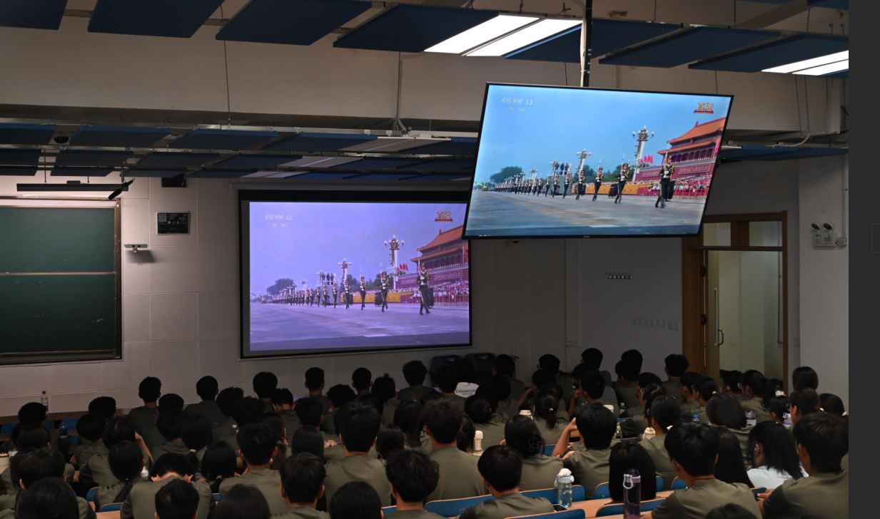 9月3日,纪念中国人民抗日战争暨世界反法西斯战争胜利80周年大会在北京隆重举行。公司把观看纪念大会和阅兵仪式作为一堂思政大课,纳入2025级新生军事训练、课堂教学、党团支部和班级的重要活动内容,并在《向学统数》学习通党建课程平台开设交流专区,师生通过各类平台观看直播盛况,引起热烈反响。