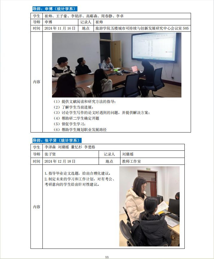 2024-2025学年第一学期专业导师引领育人活动如下。