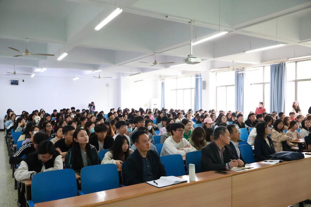 田学斌以《在中国式现代化河北场景建设中贡献青春力量》为题,从理解中国式现代化河北场景、在河北高质量发展中贡献青春力量两个方面,通过详实的数据分析,系统解读了什么是现代化、什么是中国式现代化,以及如何准确把握河北发展的条件环境、深入谋划推进中国式现代化河北场景、加快建设经济强省美丽河北等问题,希望经贸学子努力学习科学文化知识,扎实提高自身专业技能,以实际行动参与到中国式现代化河北场景建设中去,为美丽中国、美丽河北贡献聪明才智和青春力量。