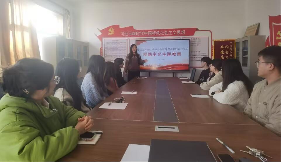 【本科生第二党支部】10月30日,本科生第二党支部开展“铭记光辉历史 传承红色基因 争做新时代好少年”爱国主义主题教育党课,党支部书记杨晨主讲,支部全体党员参加。党课主要讲解了三部分内容:一是什么是爱国主义;二是什么是传统爱国主义;三是如何做新时代爱国者。通过党课使同学们增强爱国的情感和振兴祖国的责任感,树立民族自尊心与自信心;弘扬伟大的中华民族精神,高举爱国主义旗帜,锐意进取,自强不息,艰苦奋斗,顽强拼搏,真正把爱国之志变成报国之行。今天为振兴中华而勤奋学习,明天为创造祖国辉煌未来贡献自己的力量!