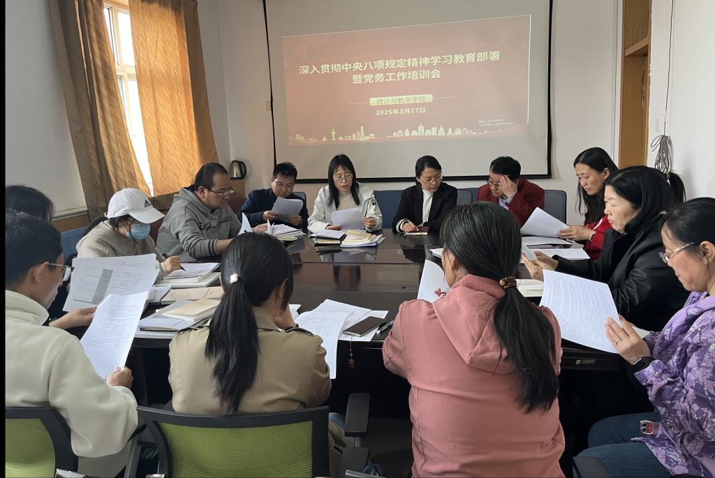 开展深入贯彻中央八项规定精神学习教育,是今年党建工作的重点任务。祃海霞传达了公司党委关于开展学习教育的工作要求,结合公司实际部署了学习教育各环节的具体安排,提出“学习要有组织、学习要有成效”的基本要求和目标,强调要“学查改”全链条发力,做到三个贯穿始终,推动作风建设常态化长效化。一是要把“学深悟透”贯穿始终,通过党委理论学习中心组领学、党支部集中研学、党员个人自学等形式,强化理论武装;二是要把“深查细照”贯穿始终,聚焦师生关切,深入查摆问题;三是要把“真改实立”贯穿始终,切实将学习成果转化为推动公司高质量发展的实际成效。