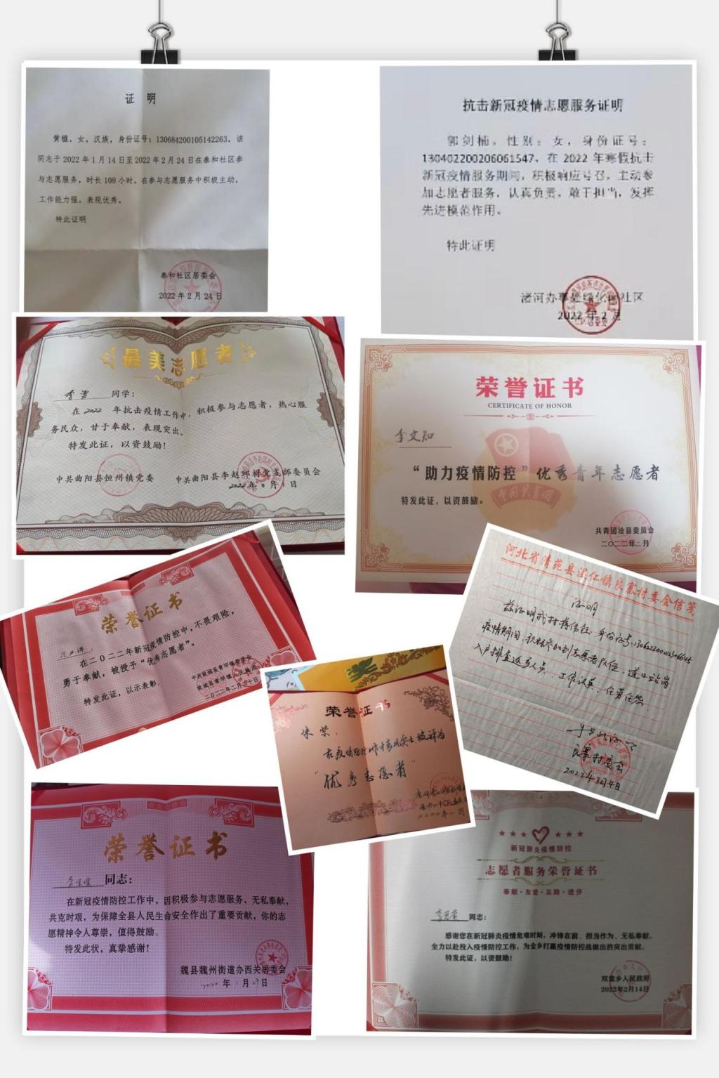 62位志愿员工名单、志愿服务工作照、荣誉证书及感谢信等附后。