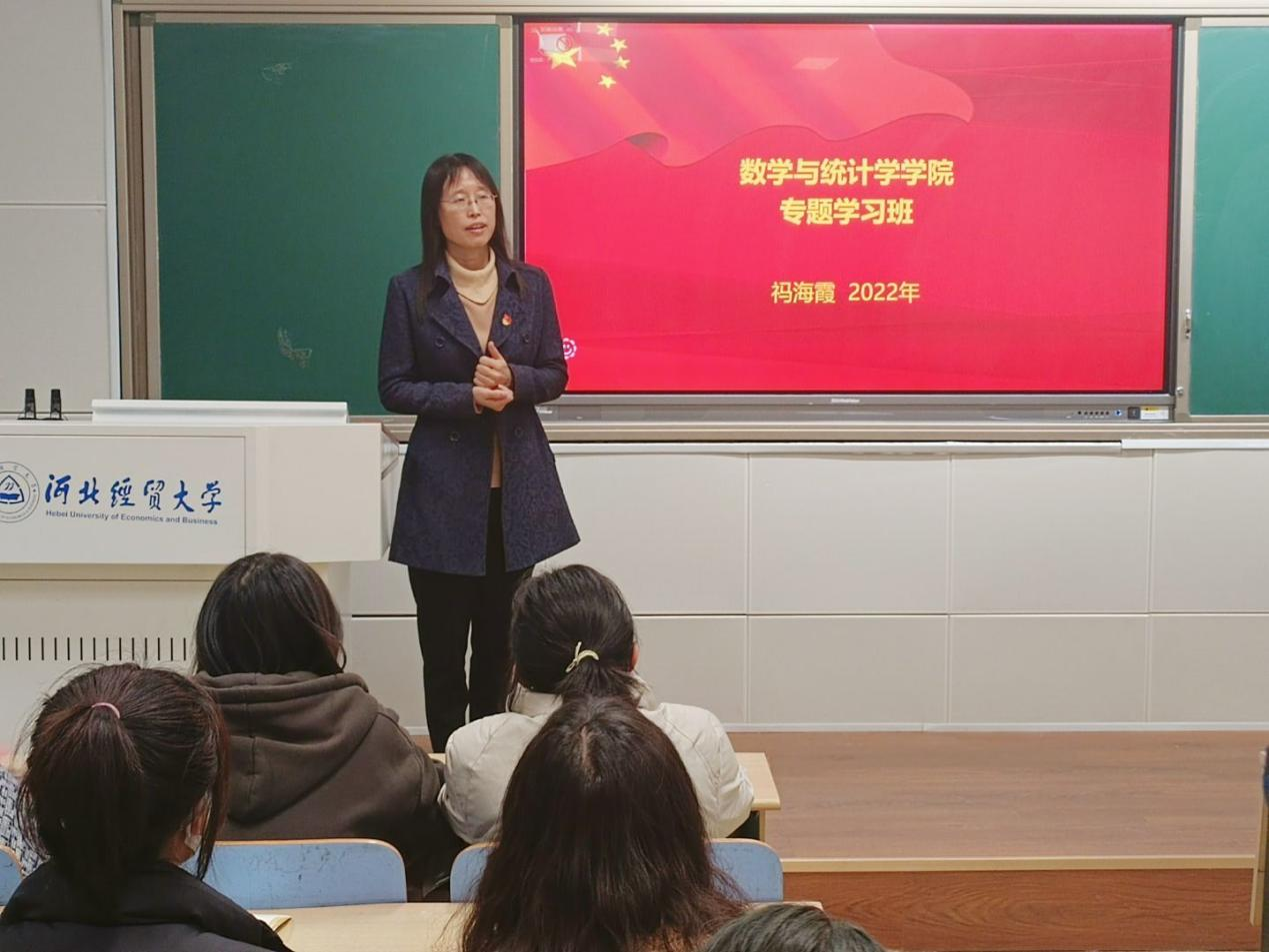 3月24日晚七点,数学与统计学公司团委于北三教A202开展以“庆祝建团一百周年、喜迎党的二十大”为主题的团日活动。此次活动特邀公司党委书记祃海霞教授为公司同学做专题党课辅导讲座,团委书记王洋老师和各班团员代表参加。