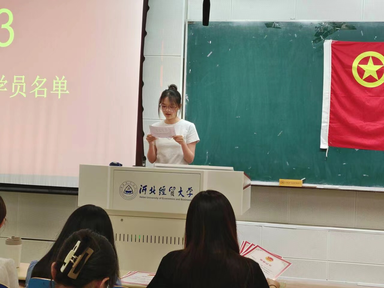 团委组织部部长郑欣悦宣读优秀学员名单,王洋老师为优秀学员颁发荣誉证书并合影留念,同时代表公司团委向获奖同学表示祝贺。