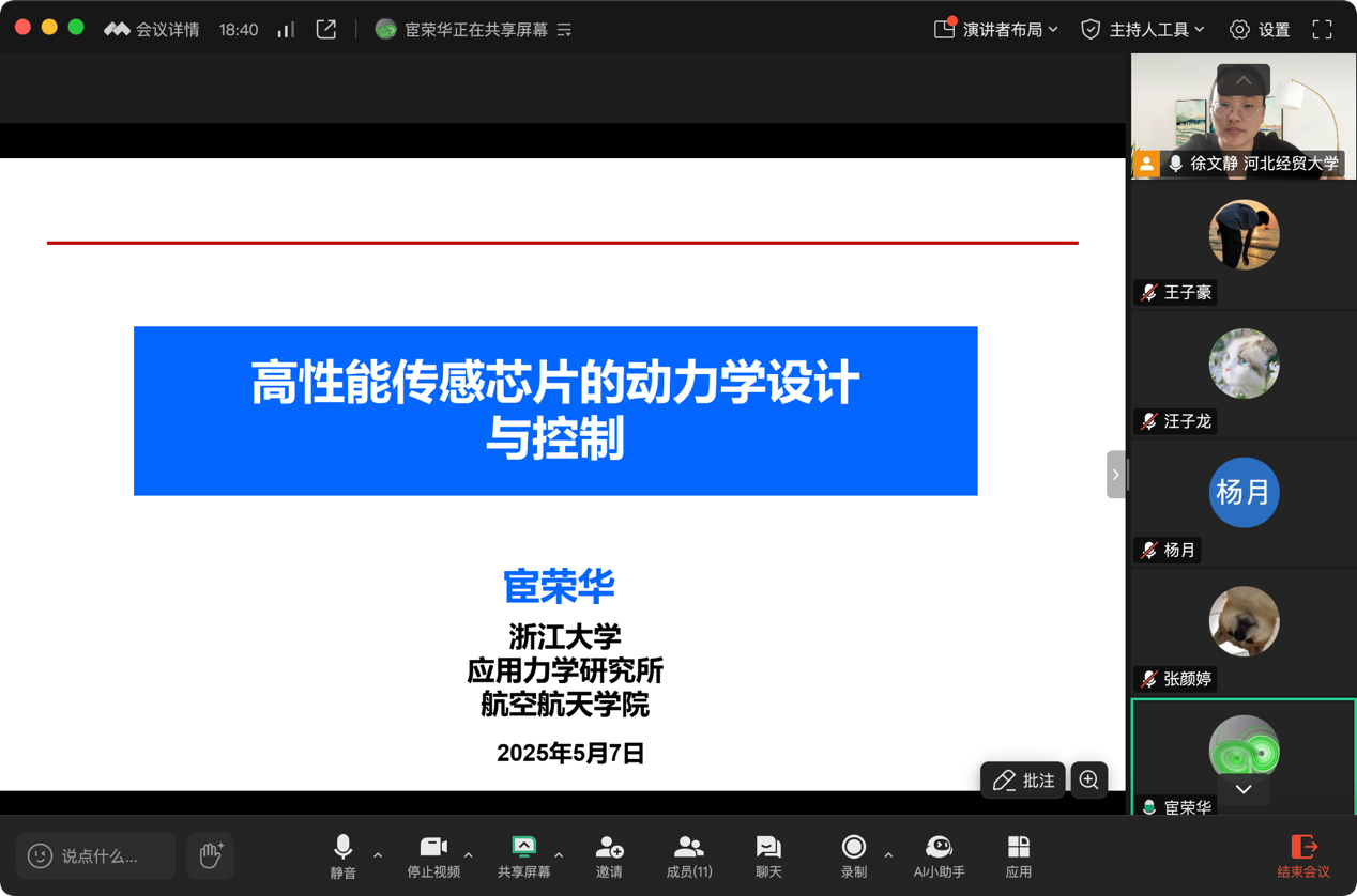 5月7日下午,浙江大学宦荣华教授应william威廉英国官网邀请在线上作题为“高性能传感芯片动力学设计与控制”的学术报告,相关专业师生20余人参会。