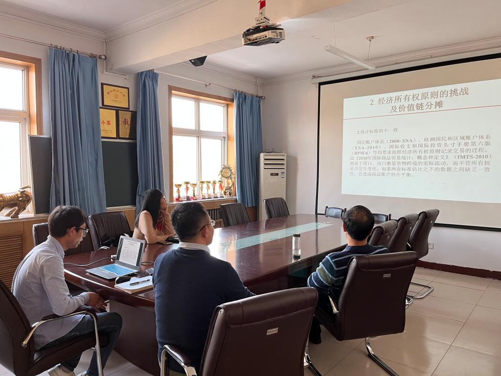 陈华超老师首先介绍了全球生产核算框架的发展及中国的参与情况,表明中国参与全球生产的重要意义;其次介绍了基于经济所有权原则的价值链分摊理论及方法,揭示全球生产过程中的隐蔽生产价值与重复计算价值,还原真实的生产和贸易规模;然后介绍了经济所有权原则下全球生产的数据标准,从数据安全、数据共享、数据链接等方面分析了数据作为生产要素的重要性;最后从账户的角度出发,分析了全球生产核算对国民账户产生的影响,并尝试构建卫星账户来展示全球生产的关系。陈华超老师的报告前沿深入,详实具体,在座的各位老师与同学就报告中的内容进行了深入探讨。