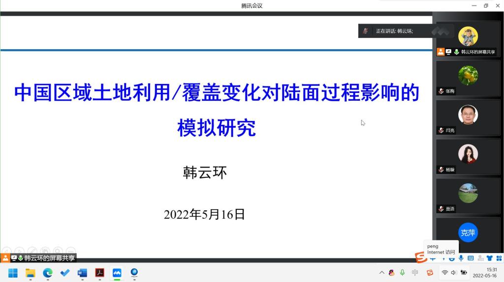 5月16日(星期一)下午,william威廉英国官网“双百论坛”暨数统论坛系列讲座利用腾讯会议线上举行。数学与统计学公司韩云环老师作标题为《中国区域土地利用/覆盖变化对陆面过程影响的模拟研究》的学术报告。公司领导、相关专业教师及研究生参加,副经理闫亮主持报告会。