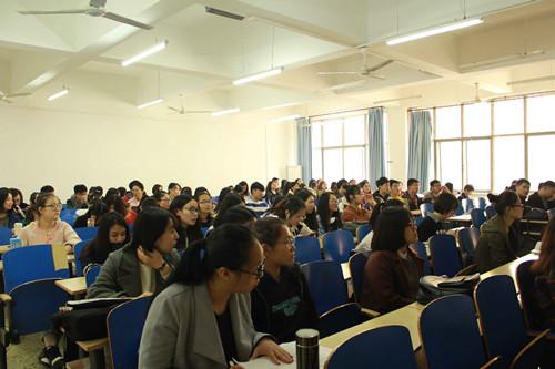 11月6日下午,数学与统计学公司在B101教室组织第43期党课暨十九大精神宣讲主题班会,全院本期党员发展对象、入党积极分子和2014级全体员工共200余人参加。