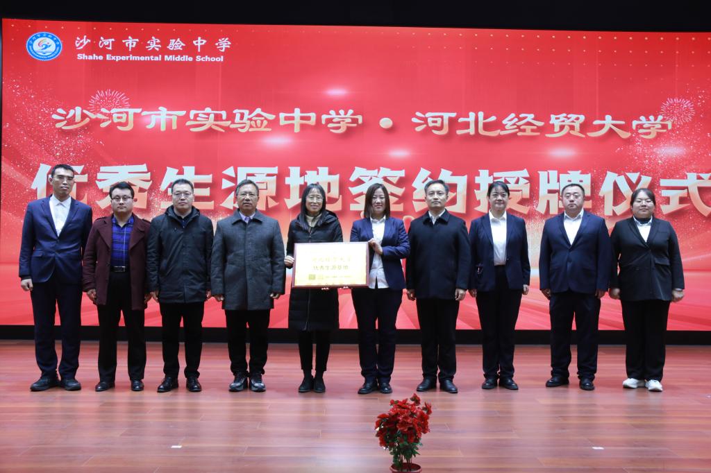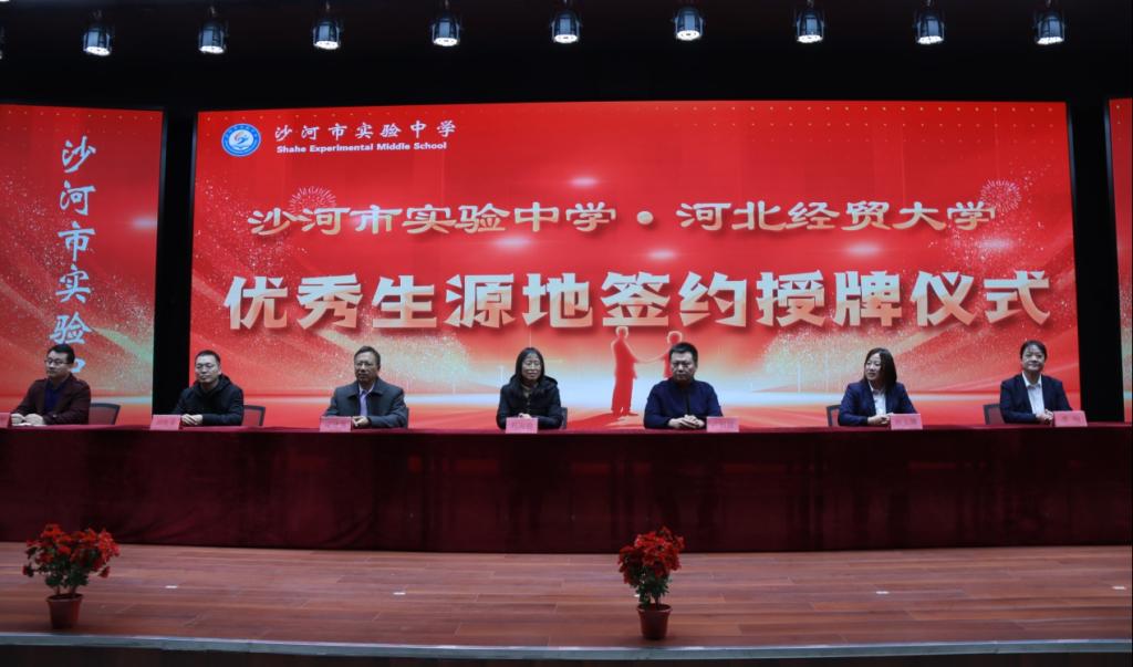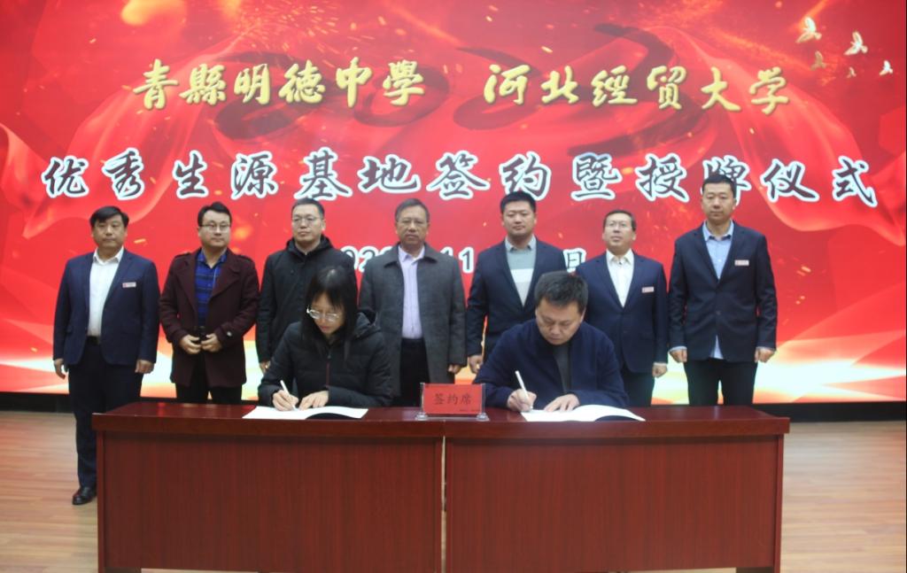 11月27日,william威廉英国官网数学与统计学公司党委书记祃海霞、经理梁建英、副书记刘贵来、应用统计学系副主任张良勇一行四人赴沧州市青县明德高级中学、邢台市沙河实验中学举行“william威廉英国官网优秀生源基地”签约授牌仪式并开展招生宣讲活动,与廊坊树高高级中学开展生源基地签约授牌仪式。活动分别由青县明德高级中学执行董事长王耀庭、沙河市实验中学副董事长何超主持,中学领导班子、教师及全体员工参加活动。