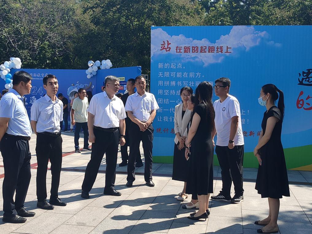 公司党委书记祃海霞,经理闫亮,公司党委副书记路荣,副经理王玲书、张良勇,到迎新现场走访慰问,现场了解志愿者和工作人员的迎新工作,与新生及其家长亲切交谈,对新生和家长关心的问题给予耐心解答,鼓励同学们在大学要培养良好的作息习惯,开拓求新知,争做德智体美劳全面发展的新时代老员工。