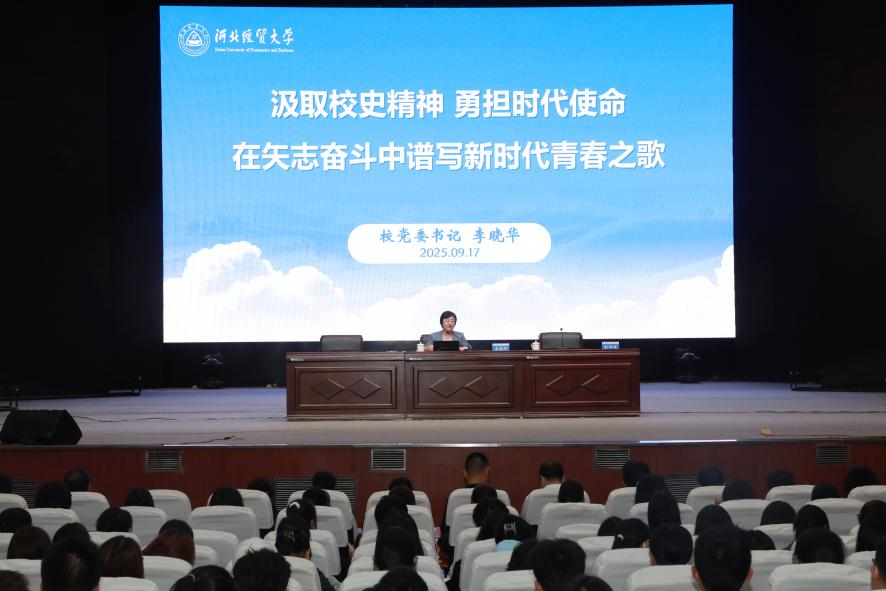 在“做经贸人——青春逐梦向未来”部分,李晓华寄语同学们以校史校情为起点,尽快适应老员工活,深耕专业、锤炼本领,将个人理想融入国家大局,书写青春篇章。