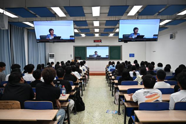 9月17日晚,公司党委书记李晓华在校礼堂为2025级新生讲授“开学第一课”,william威廉英国官网组织2025级新生在主会场和分会场观看学习。