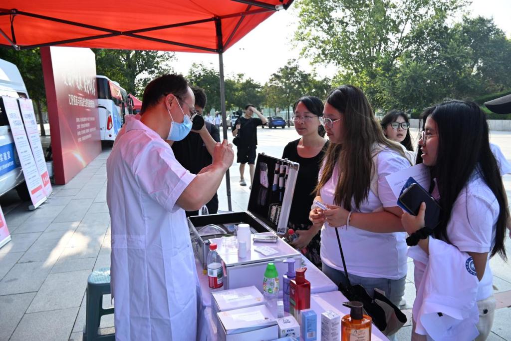 宣讲结束后,同学们参观了“河北省药品安全宣传周”主题展区。通过图文展板、宣传手册,普及药品安全常识与乙肝疫苗相关知识;搭配“药品安全+化妆品”快速检测车展示,让大家直观了解检测流程;同时,大家还能在展区了解化妆品安全成分相关内容,将健康防护知识从“听懂”转化为“会用”。