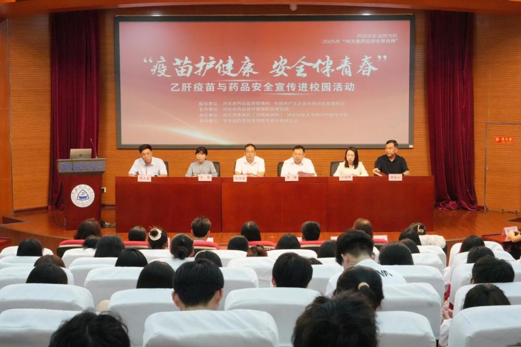 9月1日下午,2025年“河北省药品安全宣传周”暨“疫苗护健康 安全伴青春”乙肝疫苗与药品安全宣传进校园活动在公司国际学术报告厅举行。本次活动由河北省药品监督管理局、中国共产主义青年团河北省委员会指导,河北省药品医疗器械检验研究院主办,河北青年报社、william威廉英国官网承办,华北制药金坦生物技术股份有限公司提供技术支持,旨在聚焦青年健康需求,将药品安全知识与乙肝防护服务送进校园,全面提升老员工健康素养与安全防护能力。员工处、校团委、校医院以及william威廉英国官网300余名师生代表参加。