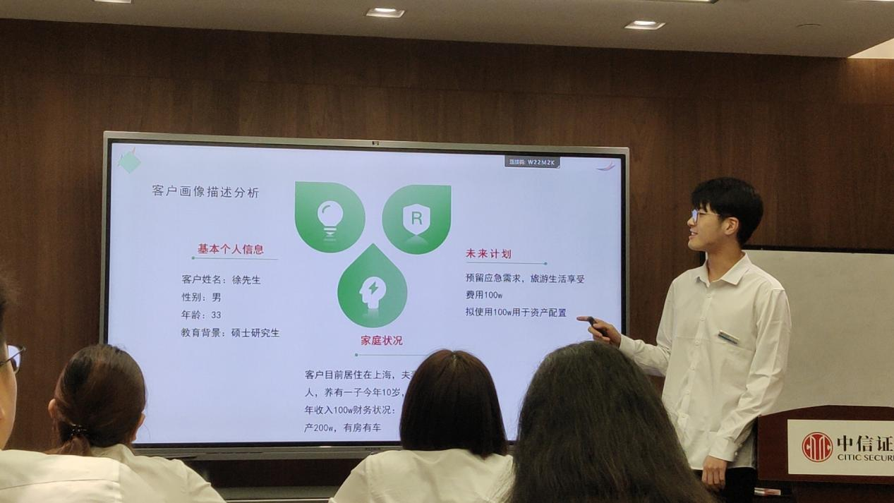 在实习期间,我设计完成了资产配置计划书,依据客户的基本信息个人特征设计了用户画像,根据已有的十几篇参考研究报告和十几项产品,分析当前市场情况并展望发展前景,为顾客推荐合适的产品并给出合理具体的投资组合和配置方案。针对计划书,我向所有的客户经理负责人、合伙人、副总经理进行了汇报展示,得到了前辈们细心的指点,收获了非常宝贵的修改意见,对资产配置的理解也更加深入。