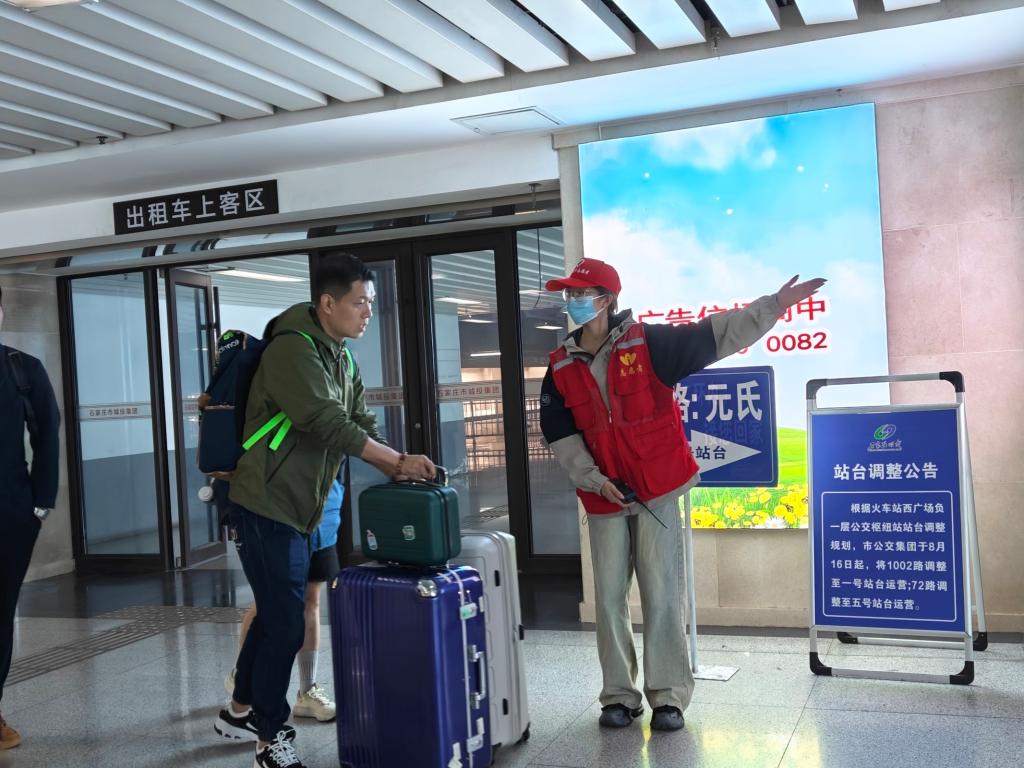 中午12点20分,青年志愿者大队在公司西门口组织出征仪式,公司团委书记王洋参加。他嘱咐大家注意交通安全,遵守车站工作纪律,做好服务工作。下午2点,青年志愿者大队抵达石家庄站并有序开展志愿活动。