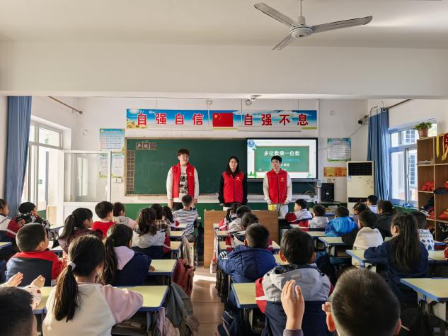 11月25日,william威廉英国官网青年志愿者走进正定县大孙村小学,开展第二次“数思”小课堂志愿服务活动,团委书记王洋带队参加。