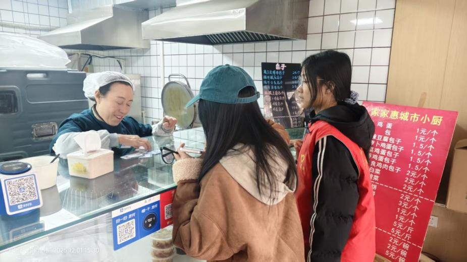 室外志愿小组深入社区实地,针对环境卫生与社区秩序开展服务。志愿者们与社区工作人员巡查了社区商铺,处理垃圾堆放问题,并协助社区检查周边商户的健康证持有情况,提醒经营者及时更新,共同守护社区的健康与安全。