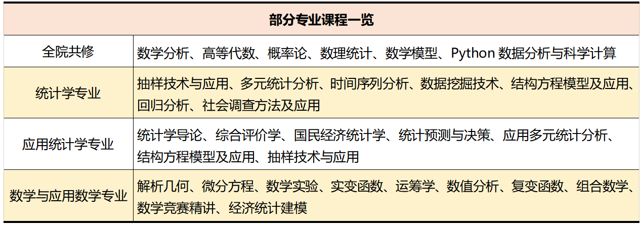 培养目标:培养具有统计思维和大数据统计分析素养,能在企事业单位和政府管理部门从事统计调查、数据处理与分析等工作,或在科研、教育部门从事研究和教学的高级数据分析人才。