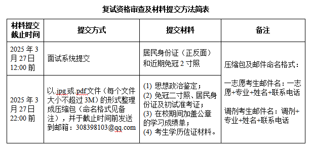 三、复试资格审查及材料提交方法