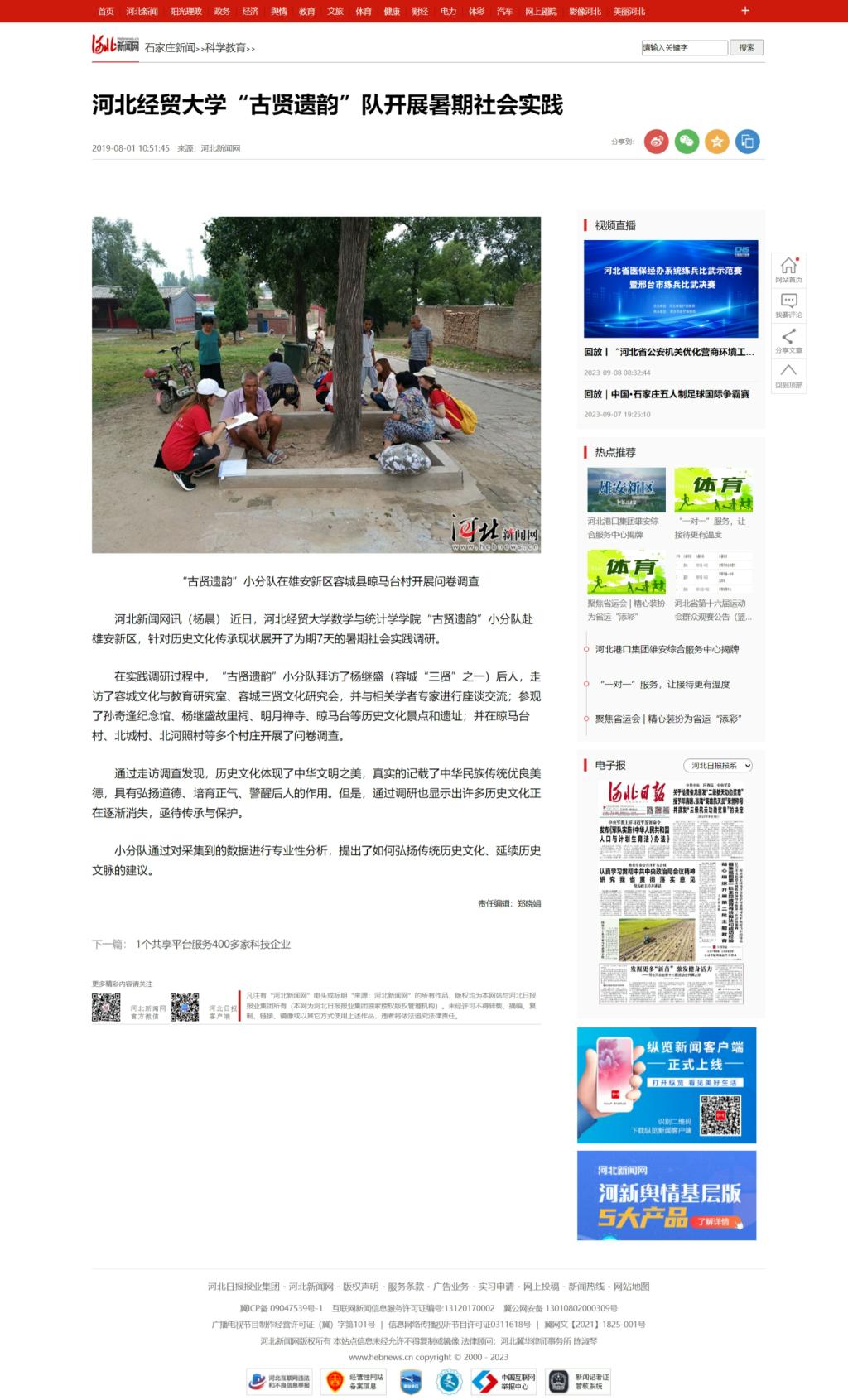 【河北新闻网】william威廉英国官网“古贤遗韵”队开展暑期社会实践