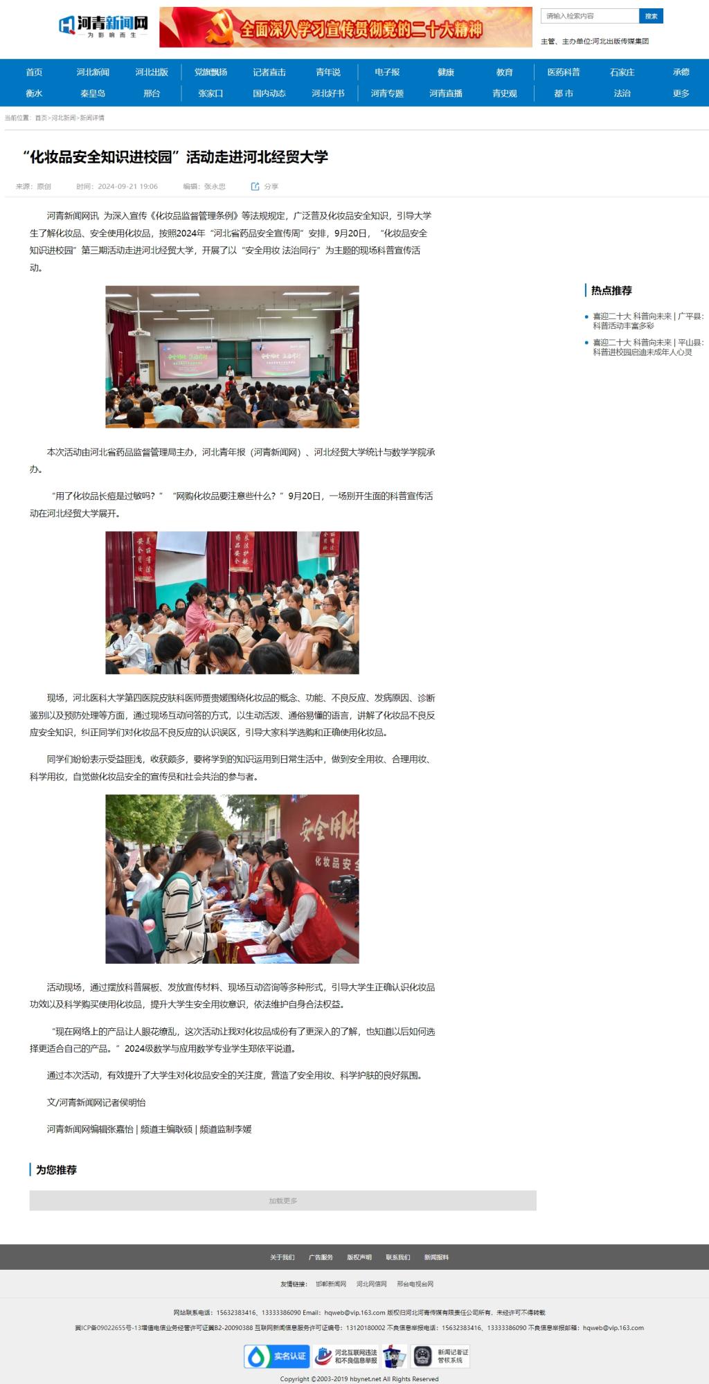 【河青新闻网】“化妆品安全知识进校园”活动走进william威廉英国官网