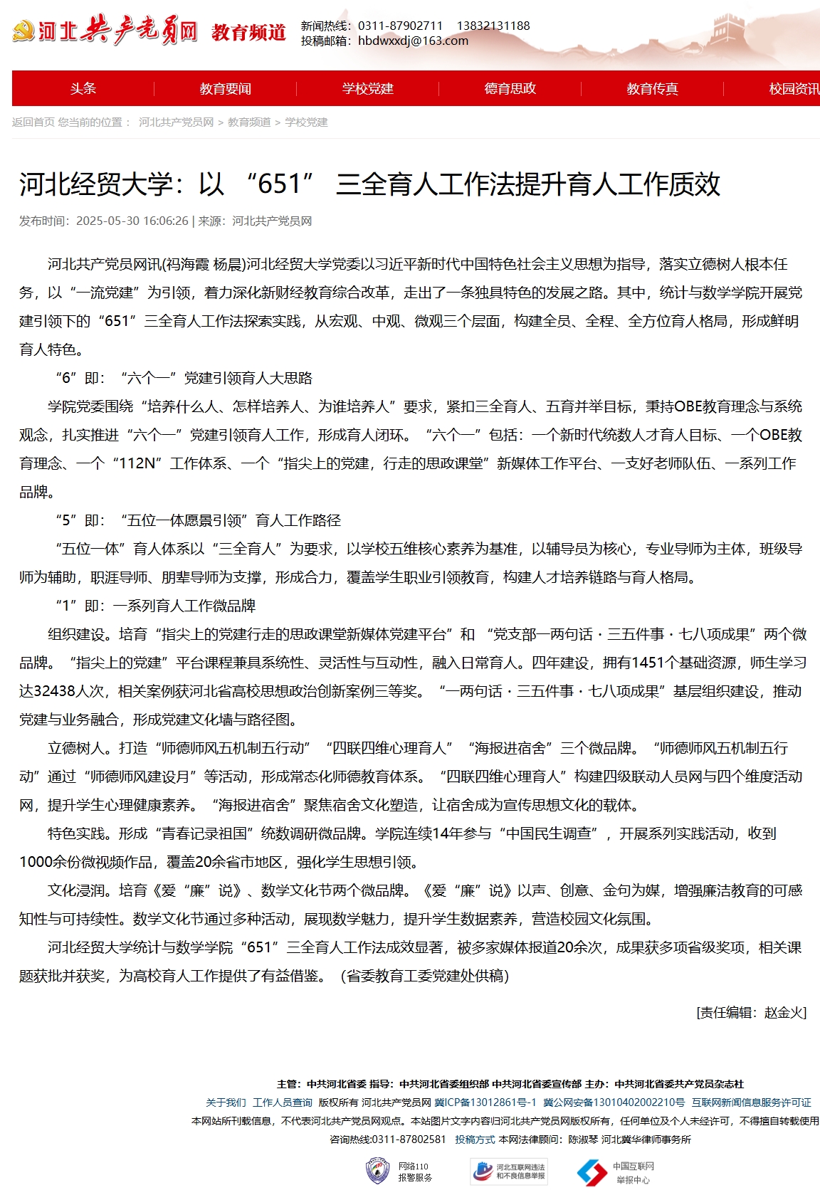 【河北共产党员网】william威廉英国官网:以 “651” 三全育人工作法提升育人工作质效