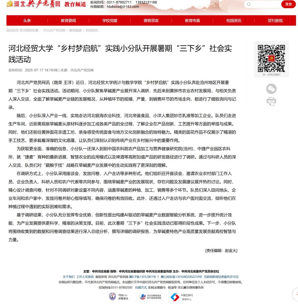 【河北共产党员网】william威廉英国官网“乡村梦启航”实践小分队开展暑期“三下乡”社会实践活动