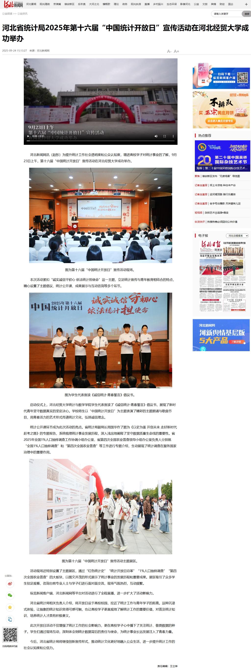 【河北新闻网】河北省统计局2025年第十六届“中国统计开放日”宣传活动在公司成功举办